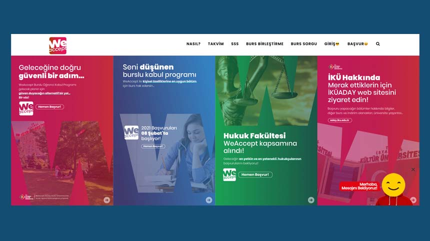 We Accept scholarships for which 2021 YKS candidates can apply will be valid for paid quotas in 8 faculties including Law, Science and Letters, Economic and Administrative Sciences, Education, Art and Design, Architecture, Engineering and Health Sciences. Candidates will be able to access all details regarding the program providing scholarships, through which applications are made digitally, at https://we-accept.com. The university, where two out of every three students receive higher education services with scholarships and discounts, has other opportunities, especially the success and first choice scholarships, at aday.iku.edu.tr.