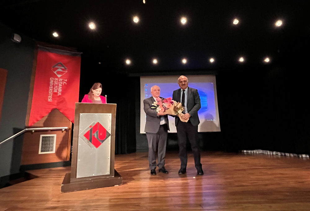 A book presentation event titled "A Gift to Prof. Dr. Mehmet Fatih Köksal" was organized by the Department of Turkish Language and Literature at the Faculty of Arts and Sciences of Istanbul Kültür University. A Gift Book was presented to Mehmet Fatih Köksal, Head of the Department of Turkish Language and Literature, at the event held in Ataköy Campus Seminar Hall 2 on Friday, January 14, 2022 at 14:00.