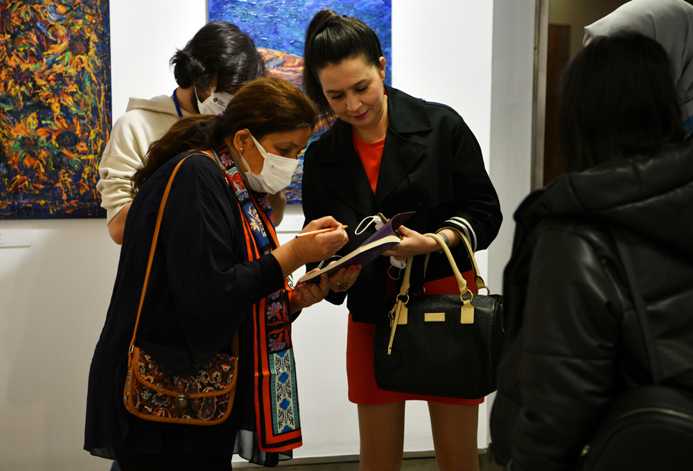 Istanbul Kültür University Fine Arts Application and Research Center (GSUAM) brought together Özgen Ulukutlu's painting exhibition titled “While Colours Loom” with the people of Kültür and art lovers. At the exhibition, which was opened on Wednesday, March 30, at 15.00, art lovers were able to see the works of Ulukutlu, which he created by abstracting the elements of nature with different colour compositions. The poetry book Cibinlik, which she wrote inspired by Ulukutlu's painting works, also attracted attention in the exhibition. The exhibition can be visited at Istanbul Kültür University Art Gallery (IKUSAG) until May 6, 2022.