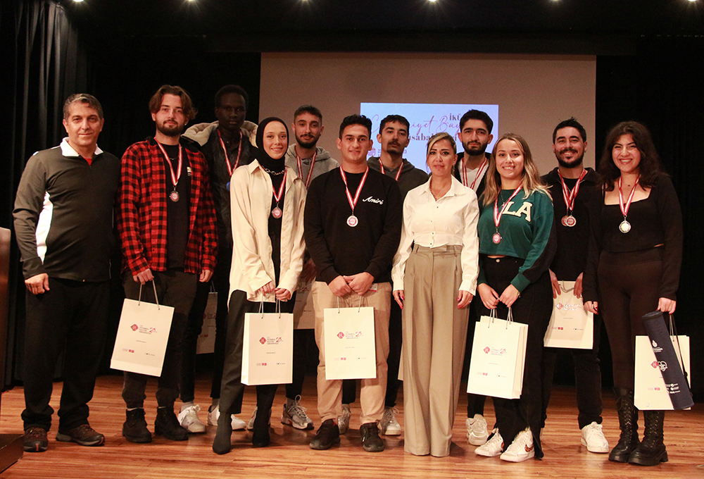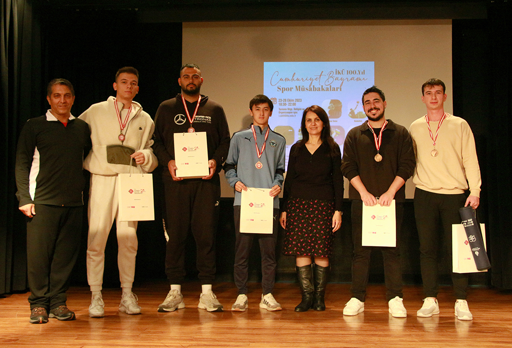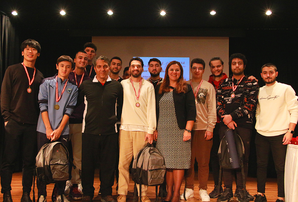 Our students in the teams that ranked in the tournament were presented with their medals and awards at a ceremony held at Önder Öztunalı Hall on November 6, 2023. The awards for the third place teams were presented by the Head of the Kültür Point Unit, Assist. Prof. Neslihan Fatma Er, for the second place teams were presented by our Vice Rector Prof. Dr. Gülce Öğrüç Ildız and for the champion teams were presented by our Rector Prof. Dr. Fadime Üney Yüksektepe.