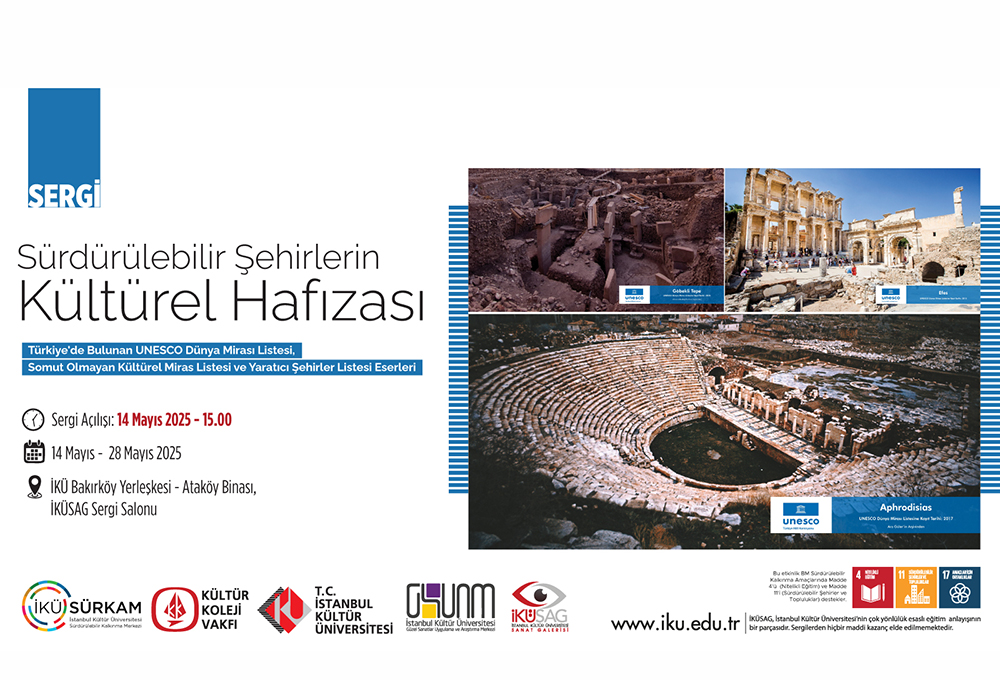 İstanbul Kültür Üniversitesi Sanat Galerisi (İKÜSAG), Sürdürülebilir Kalkınma Merkezi (İKÜ SÜRKAM) ve Güzel Sanatlar Uygulama ve Araştırma Merkezi (GSUAM) iş birliğinde düzenlenen “Sürdürülebilir Şehirlerin Kültürel Hafızası” sergisine ev sahipliği yapacak.