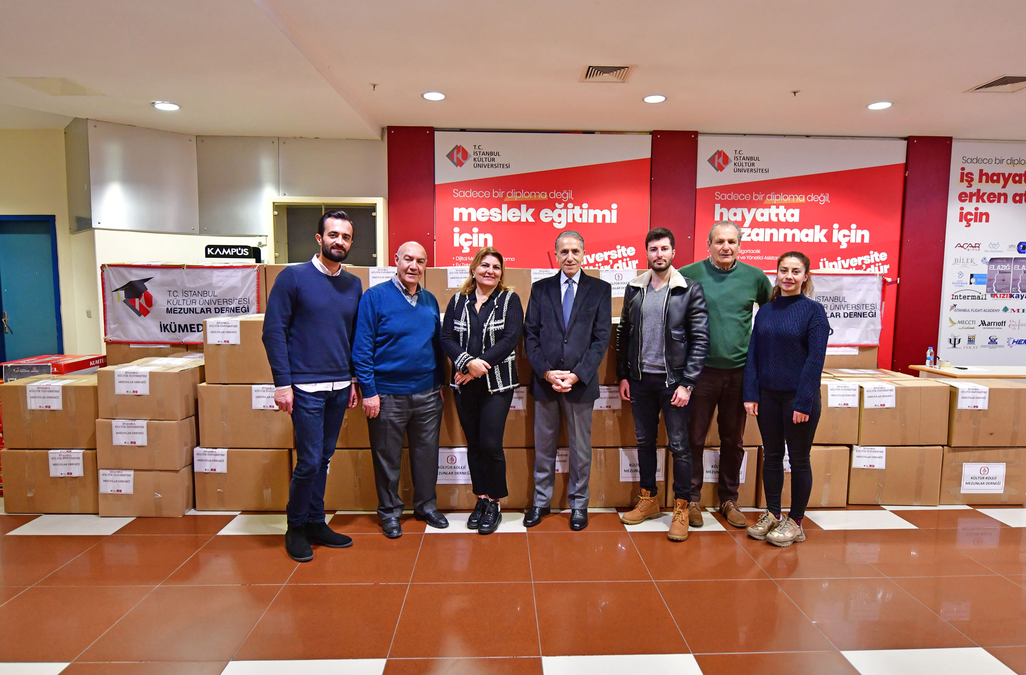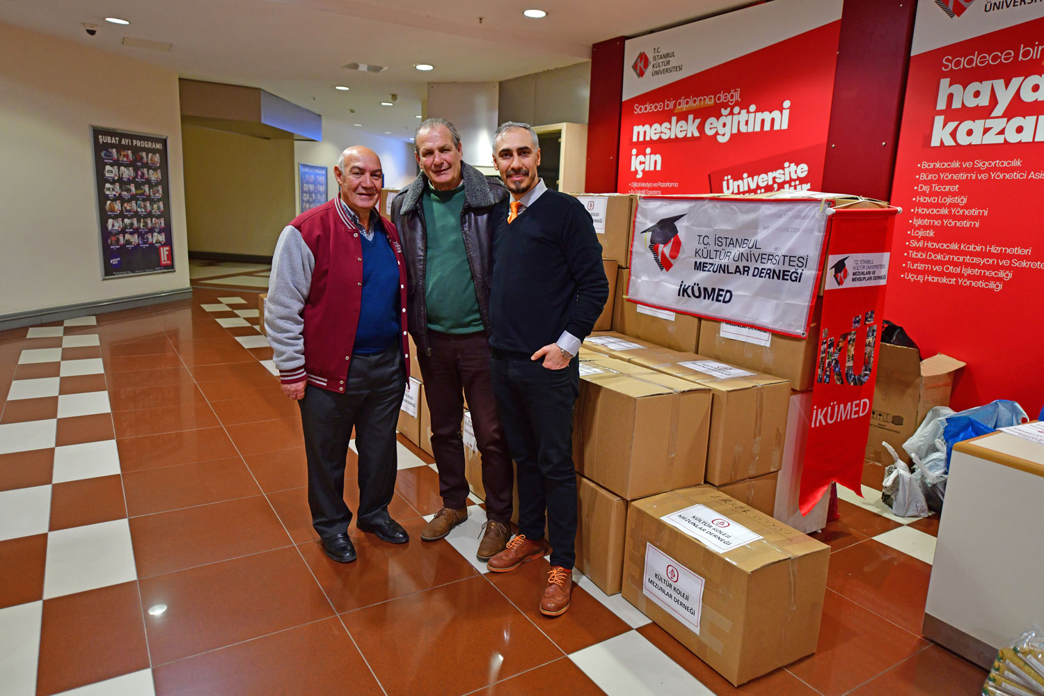 İstanbul Kültür Üniversitesi (İKÜ), Elazığ’ın Sivrice ilçesinde 24 Ocak Cuma günü meydana gelen 6,8 büyüklüğündeki depreme sessiz kalmadı. Kültür Koleji Mezunlar Derneği (KÜMED) ile İstanbul Kültür Üniversitesi Mezunları ve Mensupları Derneği (İKÜMED) iş birliğinde, “Elazığ Üşümesin” isimli bir yardım kampanyası düzenlendi. İKÜ Ataköy yerleşkesinde açılan stantlarda 29 Ocak Çarşamba gününe kadar toplanan yardımlar, ihtiyaç sahiplerine ulaştırılmak üzere AFAD İstanbul İl Afet ve Acil Durum Müdürlüğü’ne teslim edildi. Battaniye, giysi, çocuk bezi, ayakkabı/bot, oyuncak, kırtasiye malzemeleri, kuru gıda, konserve vb. ürünlerden oluşan yardımlar, 1 Şubat Cumartesi günü Elazığ’a ulaştırılarak dağıtımı yapıldı. Destek olan herkese çok teşekkür ederiz.