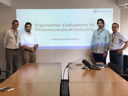 Endüstri Mühendisliği 4. sınıf öğrencilerimizden Günay Günay ve Mertcan Biçici, grup arkadaşları Çağatay Çavuşoğlu ve İ. Emre Yılmaz ile birlikte Doç. Dr. Oğuzhan Erdinç danışmanlığında hazırladıkları “İlaç Üretiminde Ergonomik Analizler” konulu bitirme projelerini, 25 Mayıs Cuma günü Mustafa Nevzat ilaç firmasının İş Sağlığı ve Güvenliği Müdürü Kubilay Hot ve ekibine sundular. Öğrencilerimizin beğeniyle izlenen çalışması, firmanın global yönetimi ile paylaşıldı.