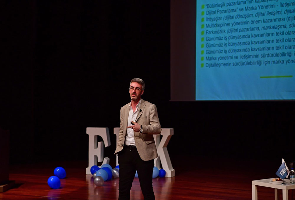 Rektörümüz Prof. Dr. Fadime Üney Yüksektepe'nin açılış konuşmasını yaptığı etkinliğe; The Purest Solutions Kurucusu Alim Ozan Evliyaoğlu, Atasun Optik Mağaza Operasyonları Direktörü Fatma Koçak Çakar, MR.DIY Yönetim Kurulu Üyesi Dilara Neyişçi Çağlı, HP Kanal Satış Direktörü Ömer Çelebioğlu ve Branding Türkiye Kurucusu Mürsel Ferhat Sağlam konuşmacı olarak katıldılar.