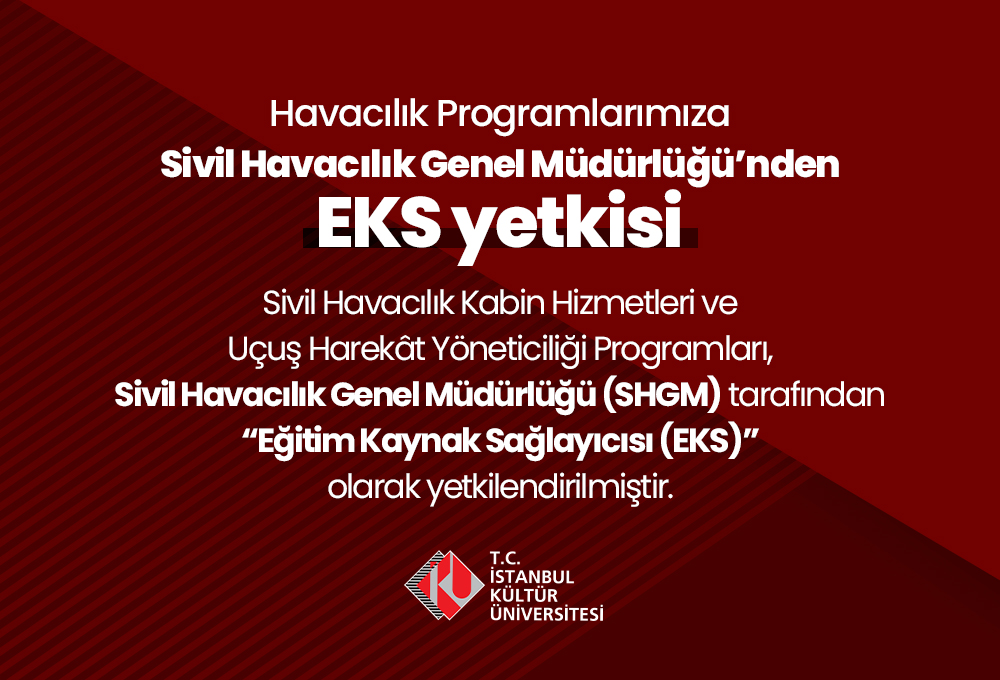 İstanbul Kültür Üniversitesi; Sivil Havacılık Kabin Hizmetleri ve Uçuş Harekât Yöneticiliği Programları, Sivil Havacılık Genel Müdürlüğü (SHGM) tarafından “Eğitim Kaynak Sağlayıcısı (EKS)” olarak yetkilendirilmiştir.