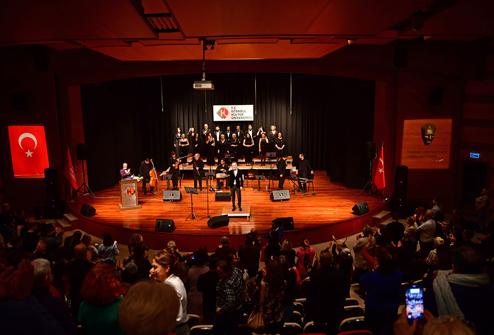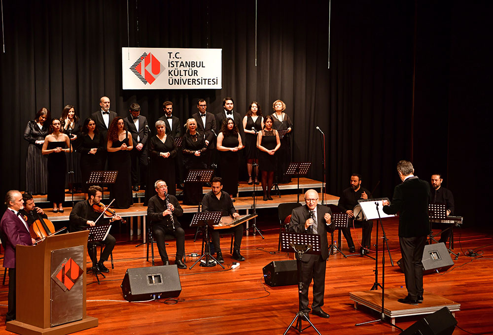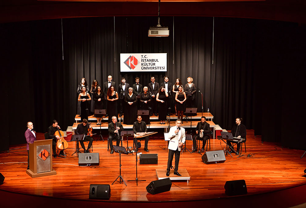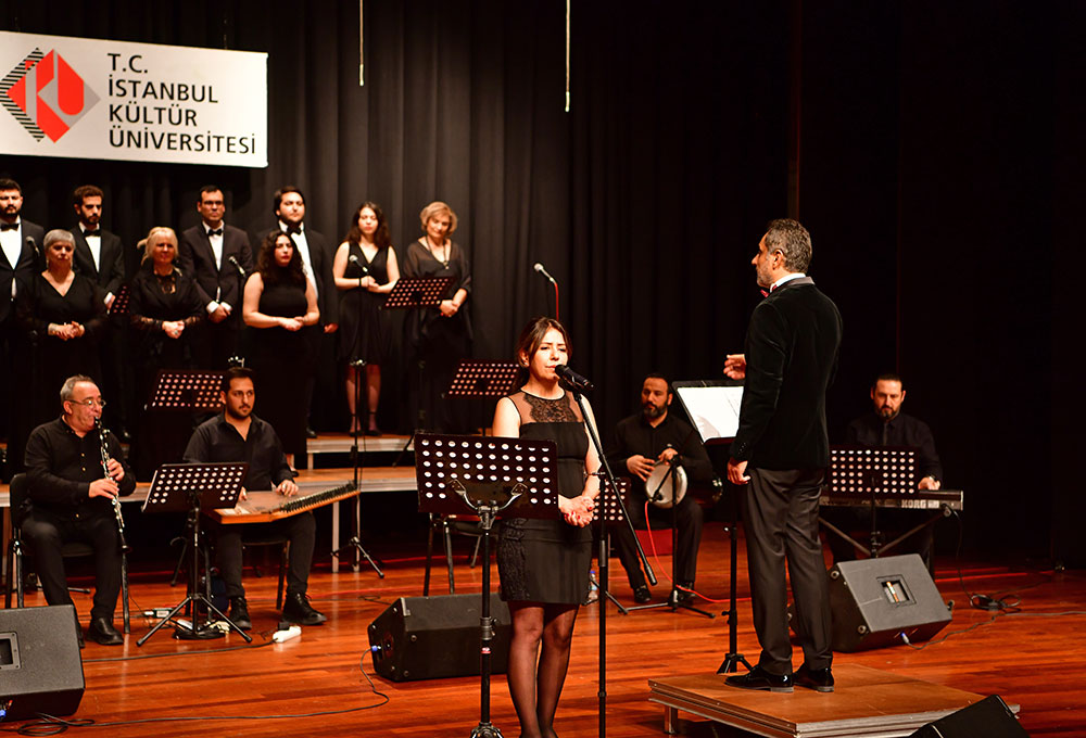 İstanbul Kültür Üniversitesi (İKÜ) Türk Sanat Müziği Korosu, 26 Aralık 2024 Perşembe günü saat 20.00’de Akıngüç Oditoryumu ve Sanat Merkezi’nde dinleyicilere unutulmaz bir sanat müziği akşamı yaşattı. Türk sanat müziğinin farklı eserlerinin seslendirildiği gecenin sunuculuğunu Cengiz Mumcu üstlendi. Şef Tarkan Öngen’in yönetimindeki koro, Türk sanat müziğinin eşsiz nağmeleriyle izleyenleri buluşturdu. Gecede, “Şarkılar Seni Söyler” ve “Rüya Gibi Her Hatıra” gibi eserler seslendirildi. Gönülden gönüle uzanan melodiler izleyicilerden büyük beğeni topladı.