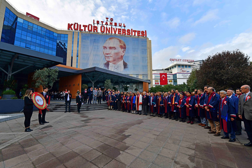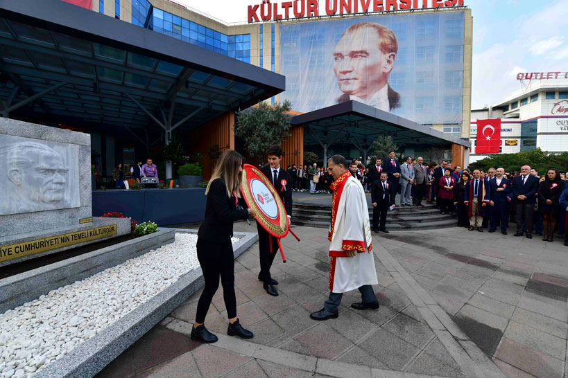 28 Ekim Pazartesi günü saat 10.00’da Ataköy yerleşkesi ön bahçesinde İstiklal Marşı'nın okunması ve saygı duruşunun ardından Rektörümüz Prof. Dr. Erhan Güzel'in Gazi Mustafa Kemal Atatürk'ün büstüne çelenk bırakması ile başlayan tören, Akıngüç Oditoryumu ve Sanat Merkezindeki kutlama programı ile devam etti.