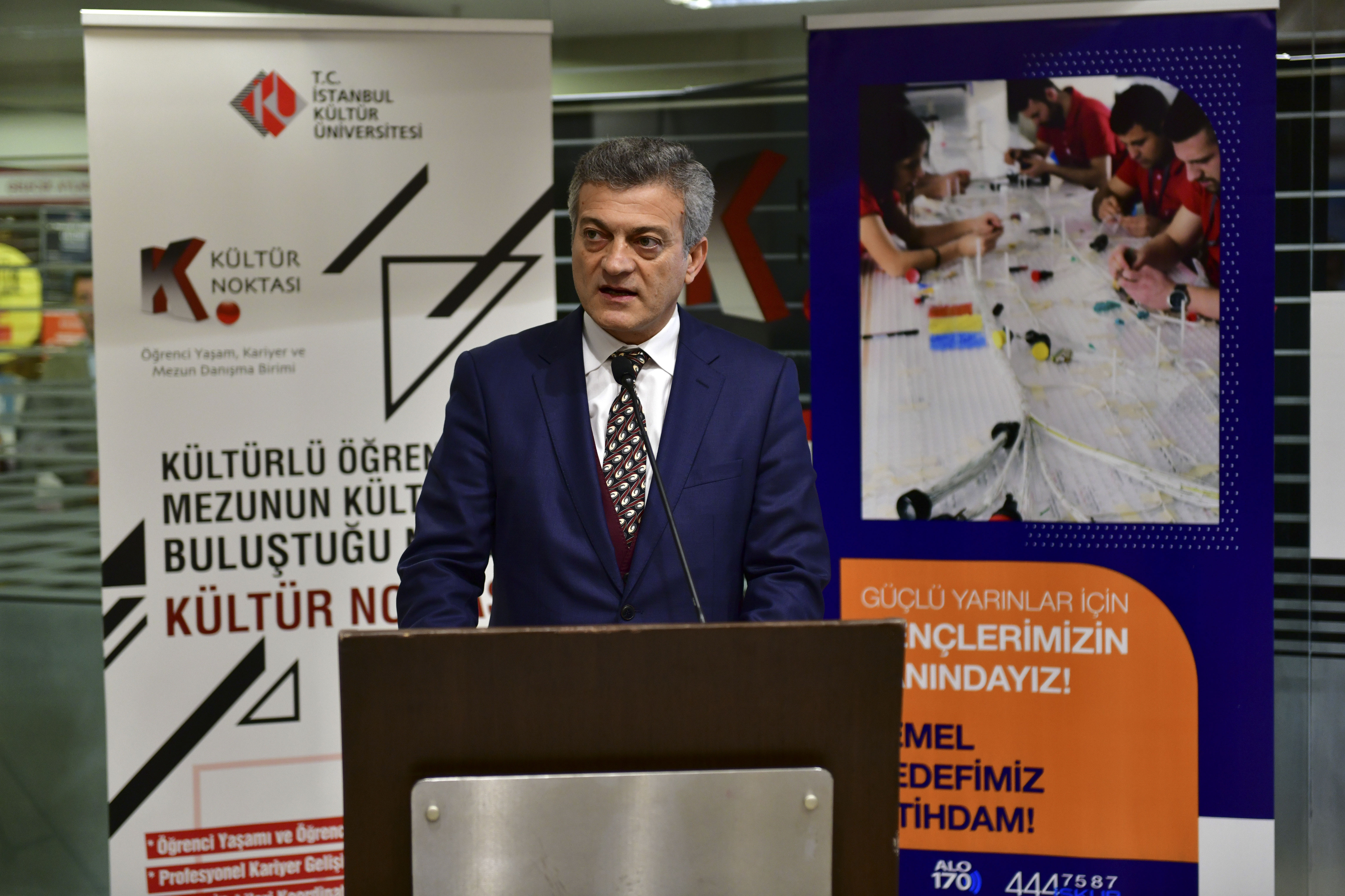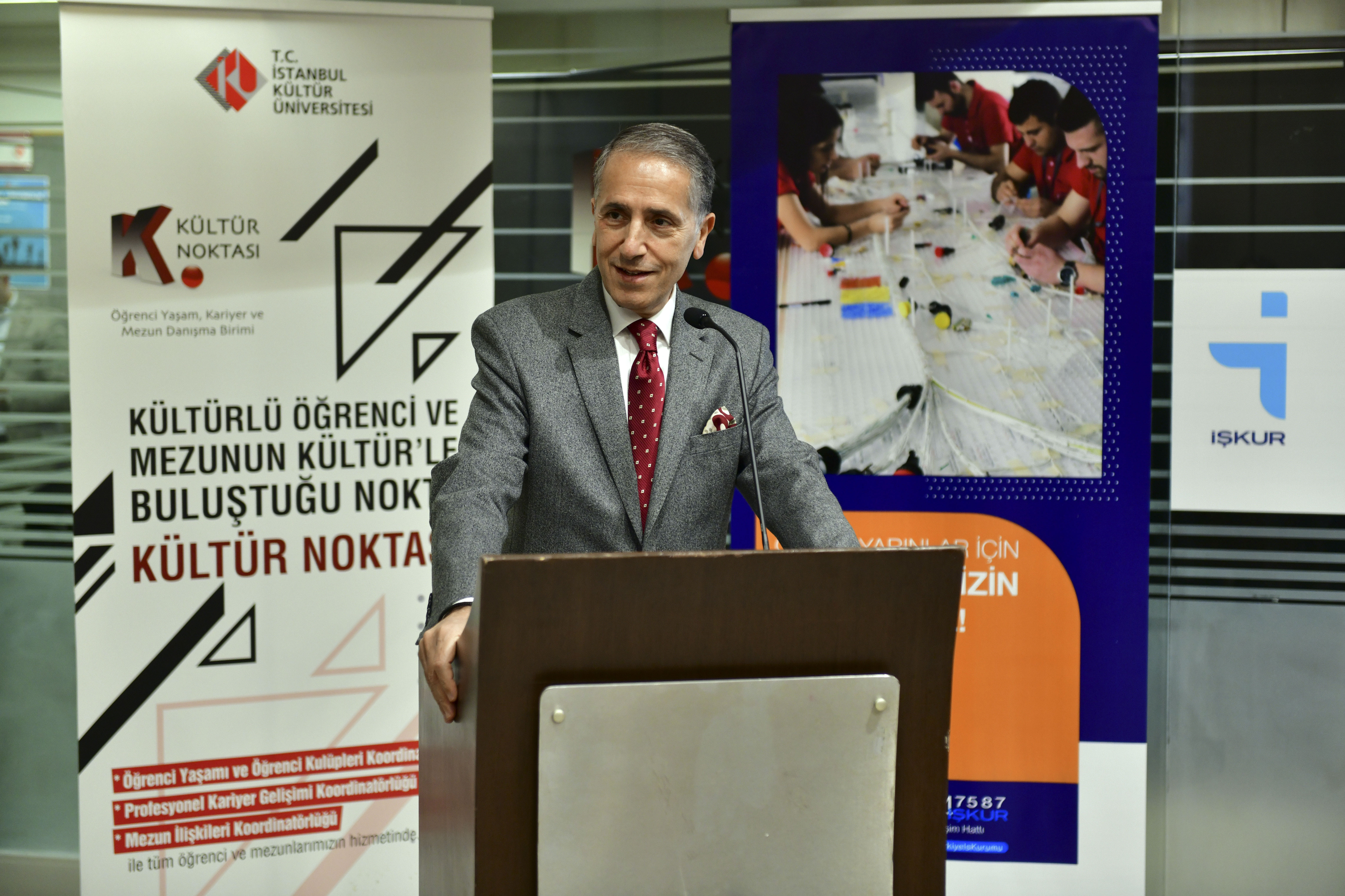 2 Aralık Pazartesi günü Kültür Noktası Deneyim ve Gelişim Ofisi’nde gerçekleştirilen açılışa; İstanbul Kültür Üniversitesi (İKÜ) Rektörü Prof. Dr. Erhan Güzel, Rektör Danışmanı Dr. Öğr. Üyesi Hikmet Çağlar, Öğrenci Yaşam, Kariyer ve Mezun Danışma Birim (Kültür Noktası) Başkanı Dr. Neslihan Fatma Er ile İŞKUR İl Müdürlüğü Bahçelievler Hizmet Merkezi Şube Müdürü Asım Avlanmaz ve İstihdam Servisi Şefi Habib Hosanlı katıldı.