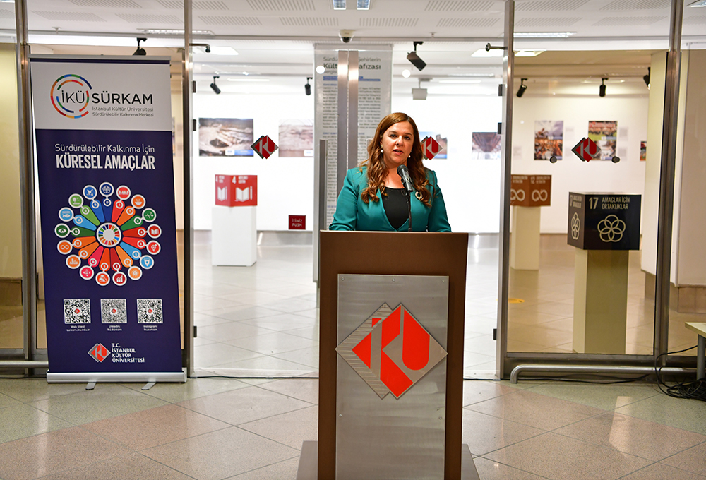 İstanbul Kültür Üniversitesi Sürdürülebilir Kalkınma Merkezi (İKÜ SÜRKAM) ile Güzel Sanatlar Uygulama ve Araştırma Merkezi iş birliğinde düzenlenen “Sürdürülebilir Şehirlerin Kültürel Hafızası” sergisi, 14 Mayıs 2025 Çarşamba günü İKÜSAG Sergi Salonu’nda açıldı. Serginin açılış konuşmaları, Rektörümüz Prof. Dr. Fadime Üney Yüksektepe ile Rektör Yardımcımız & SÜRKAM Koordinatörümüz Prof. Dr. Burcu Yavuz Tiftikçigil tarafından yapıldı.
