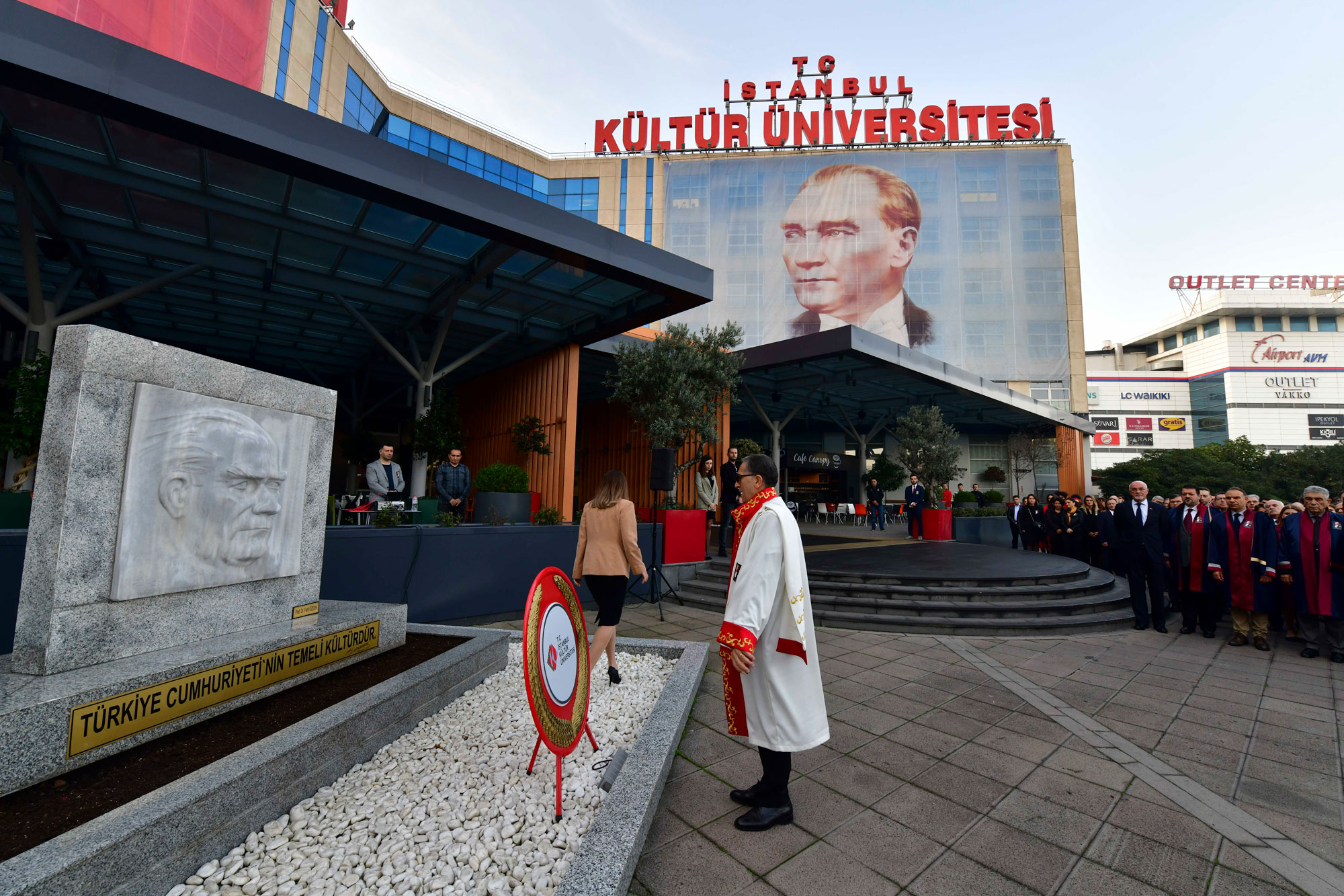10 Kasım 2019 Pazar günü Ataköy yerleşkesi ön bahçesinde Rektörümüz Prof. Dr. Erhan Güzel’in Atatürk büstüne çelenk koyması ile başlayan program, saygı duruşu ve İstiklal Marşı ile devam etti.