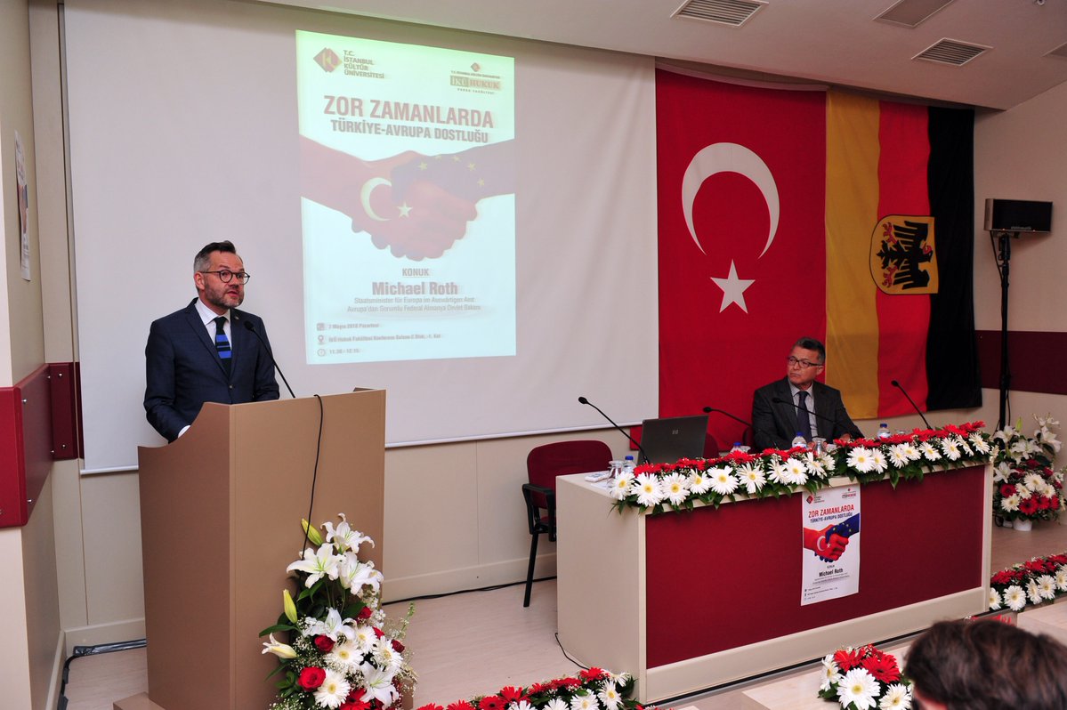 İstanbul Kültür Üniversitesi (İKÜ) Hukuk Fakültesi, “Zor Zamanlarda Türkiye-Avrupa Dostluğu” konferansını düzenledi. Almanya Dışişleri Bakanlığı Avrupa Sorumlusu Devlet Bakanı Michael Roth’un konuşmacı olduğu konferans 7 Mayıs Pazartesi günü Üniversitemiz Şirinevler yerleşkesinde gerçekleştirildi.